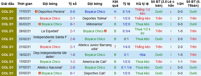 + Soi tỷ lệ kèo châu Á: Mặc dù đang đứng dưới đối thủ ở bảng xếp hạng nhưng với lợi thế sân nhà nên Boyacá Chicó vẫn được đánh giá là đội cửa trên, tuy kèo chấp chỉ đang ở mức là -0,25