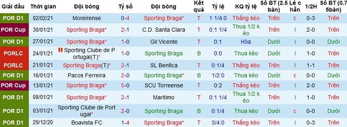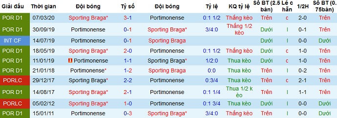 Mặc dù vậy trong 4 lần đối đầu gần nhất Braga vẫn đang giành chiến thắng tuyệt đối, trong đó 2 trận trên sân nhà đều chiến thắng với cách biệt 2 bàn. Bởi vậy với phong độ đang rất ổn định của Braga, trong khi Portimonense lại có thành tích du đấu rất tệ thì chọn cửa trên hoàn toàn là hợp lý.