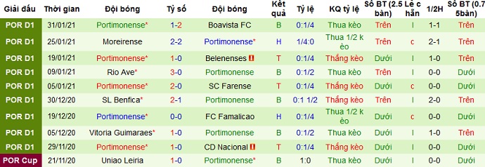 Thành tích của Portimonense hiện vẫn đang rất thất thường. Trong 5 trận gần nhất đội bóng thắng 2, hòa 1 và để thua 2. Thế nhưng thành tích sân khách của Portimonense là rất tệ, sau 6 trận thua liên tiếp mới đây đội bóng mới có được trận hòa với Moreirense ở lần du đấu gần nhất.