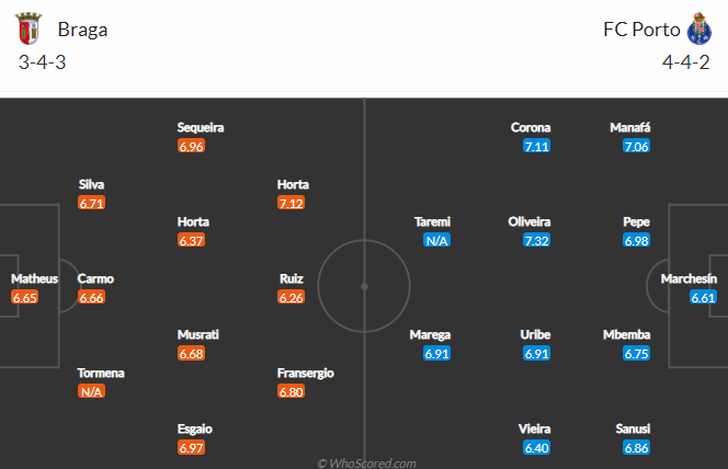 Đội hình dự kiến Braga vs Porto