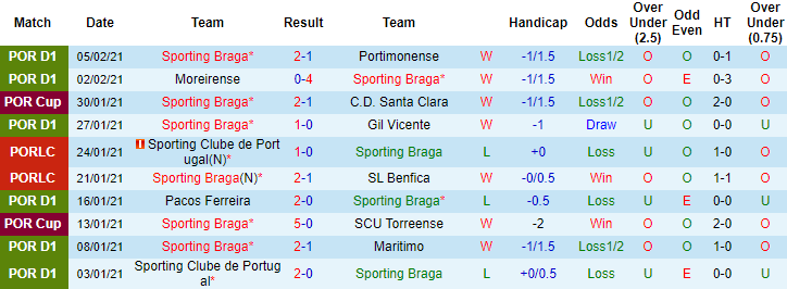 + Thống kê 10 trận gần nhất của Braga
