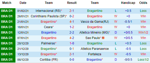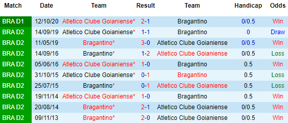 Hiện Bragantino chỉ kém đối thủ đứng thứ 12 (vị trí cuối cùng được dự Copa Sudamericana) của chính Atletico GO có 1 điểm, vậy nên họ sẽ vượt qua đối thủ trên BXH nếu giành 3 điểm trận này. Mạch trận ấn tượng của Bragantino vừa bị ngắt lại sau thất bại trên sân của Internacional RS.