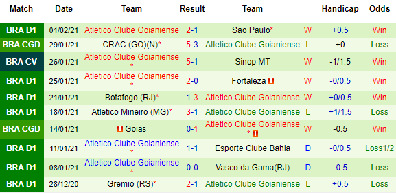 + Thống kê 10 trận gần nhất của Atletico GO