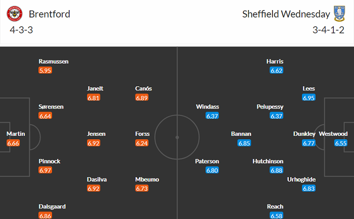 Đội hình dự kiến Brentford vs Sheffield Wed