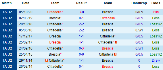 + Lịch sử đối đầu Brescia vs Cittadella