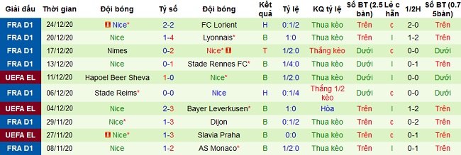 Thành tích của Nice cũng không tốt hơn là bao khi có được 1 trận thắng, 1 trận hòa và để thua 3 trận sau 5 trận gần nhất. Thế nhưng trên sân khách tại Ligue 1, Nice đang bất bại trong cả 5 lần du đấu gần đây với 3 trận thắng và 2 trận hòa.