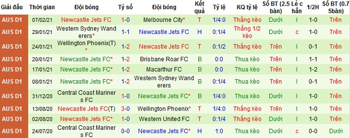 + Thống kê 10 trận gần nhất của Newcastle Jets