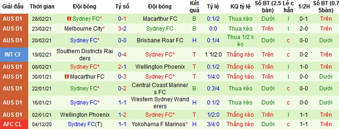 + Thống kê 10 trận gần nhất của Sydney FC