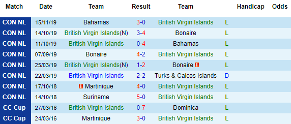 + Thống kê 10 trận gần nhất của British Virgin Islands