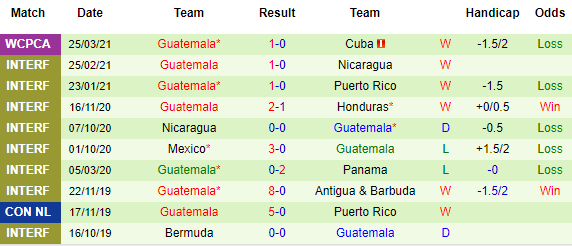+ Thống kê 10 trận gần nhất của Guatemala