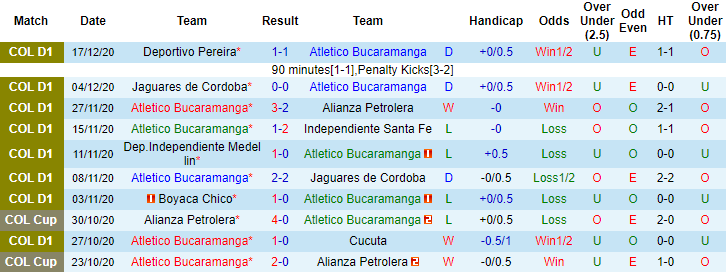 + Thống kê 10 trận gần nhất của Bucaramanga