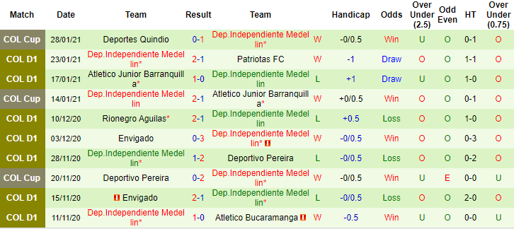 + Thống kê 10 trận gần nhất của Independiente Medellin