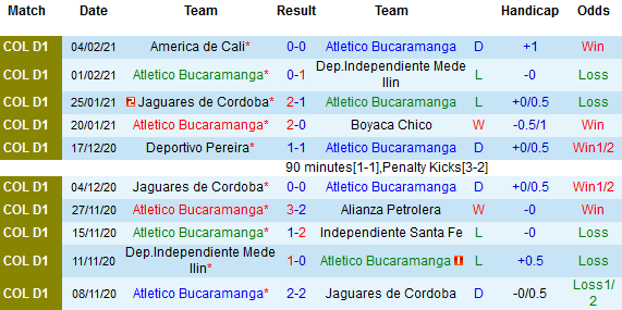 + Soi tỷ lệ kèo châu Á: Liên tiếp 3 vòng gần đây chỉ biết đến hòa và thua, trong đó chỉ ghi được 1 bàn và thua kèo tới 2 trận là hình ảnh bạc nhược của Bucaramanga.