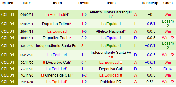 + Lịch sử đối đầu Bucaramanga vs La Equidad