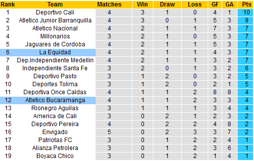 Do đó, nhìn vào bảng xếp hạng lúc này chỉ mang ý nghĩa tham khảo về phong độ. Ở trận đấu này, Bucaramanga dù được chơi trên sân nhà nhưng không nhận được đánh giá tích cực từ nhà cái châu Á.
