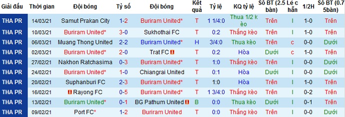 Ở 5 lần đối đầu gần nhất giữa hai đội Buriram United vẫn đang chiếm ưu thế với 3 trận thắng và 2 trận hòa. Ngoài ra Buriram United còn đang rất quyết tâm để vươn lên vị trí thứ hai, đồng nghĩa với việc giành suất dự cúp châu lục nên có lẽ chọn cửa trên ở trận đấu này có phần hợp lý hơn.