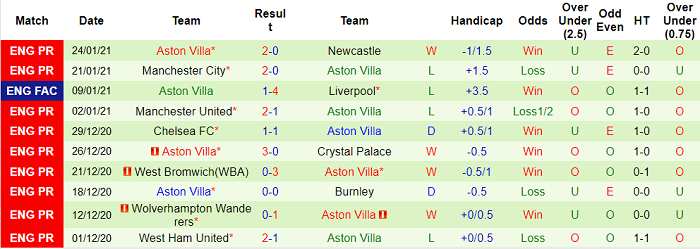 - Thống kê 10 trận gần nhất của Aston Villa