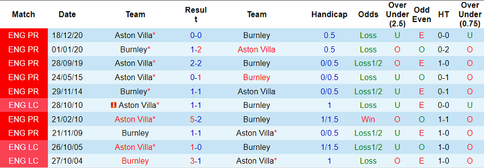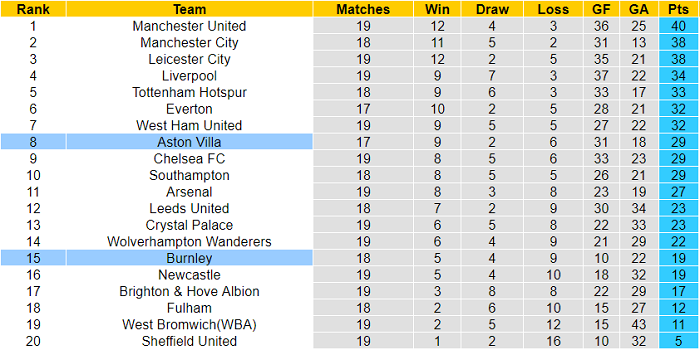 Thành tích gần đây của Burnley và Aston Villa gần như tương đương nhau. Cả hai đội đều có được 3 chiến thắng và nhận 2 thất bại ở 6 vòng gần nhất.