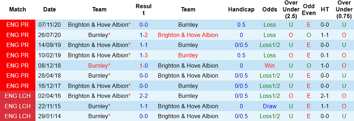 Phong độ và thống kê đối đầu Burnley - Brighton