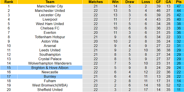 Trước một đối thủ đã thua tới 4/6 vòng gần nhất như Burnley, Brighton càng có cơ hội để tích lũy thêm điểm số. Nếu tiếp tục thể hiện sự ‘khó chịu’ như thời gian vừa qua, Brighton hứa hẹn ca khúc khải hoàn khi rời sân Turf Moor vào thứ Bảy (6/2)/