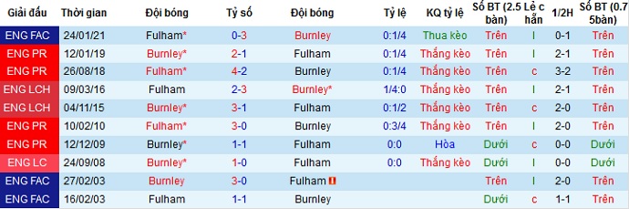 Tỷ lệ kèo Burnley vs Fulham