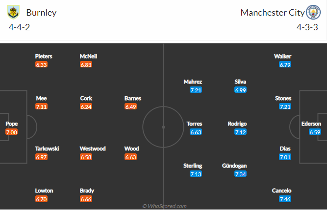 Đội hình dự kiến Burnley vs Man City