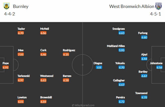Sau 24 vòng đấu tại giải Ngoại hạng Anh mùa này, Burnley giành 27 điểm, xếp thứ 15 trên bảng xếp hạng. Trong khi đó với số trận tương tự, West Brom mới giành được 13 điểm, xếp ở vị trí thứ 19. Thành tích tốt hơn cùng với việc được thi đấu trên sân nhà, Burnley hoàn toàn xứng đáng được xếp chiếu trên trước giờ bóng lăn.