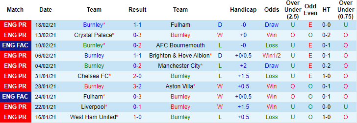 Tuy nhiên, Burnley lại không hứa hẹn vào khả năng giành chiến thắng. Bởi lẽ họ thực sự rất kém cỏi trên sân nhà. 4 lần tiếp khách gần đây tính trên mọi đấu trường, Burnley bất thắng với 2 thất bại và 2 trận hòa. 3 lần gần đây hành quân đến sân của Burnley, West Brom cũng bất bại với 1 thắng, 2 hòa. Lúc này, West Brom cũng đang rất hưng phấn sau trận hòa 1-1 ở trận gần nhất gặp MU.