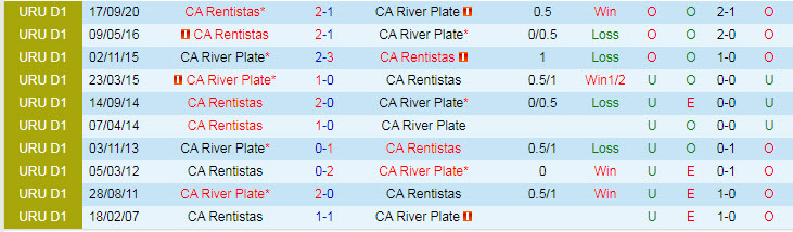 Tỷ lệ kèo CA River Plate vs Rentistas