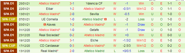 + Thống kê 10 trận gần nhất của Atletico Madrid