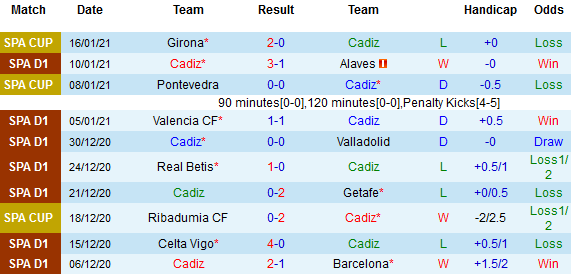 + Thống kê 10 trận gần nhất của Cadiz