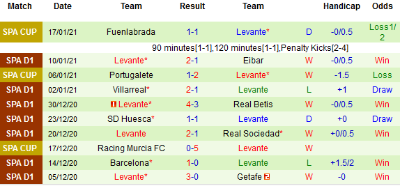 + Thống kê 10 trận gần nhất của Levante
