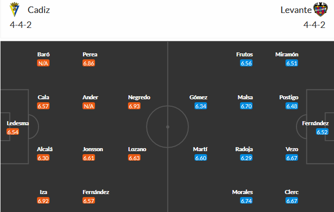 Đội hình dự kiến Cadiz vs Levante