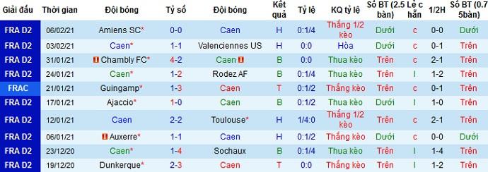 + Thống kê 10 trận gần nhất của Caen