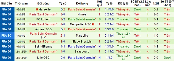 + Thống kê 10 trận gần nhất của PSG