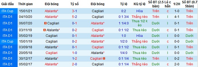+ Lịch sử đối đầu Cagliari vs Atalanta