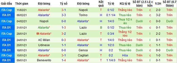 + Thống kê 10 trận gần nhất của Atalanta