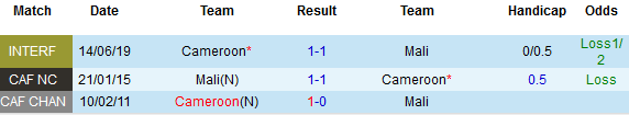 + Lịch sử đối đầu Cameroon vs Mali