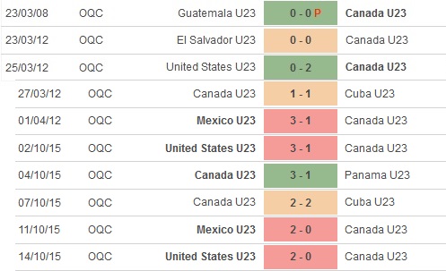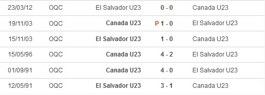 + Lịch sử đối đầu Canada U23 vs El Salvador U23
