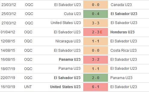 + Thống kê 10 trận gần nhất của El Salvador U23