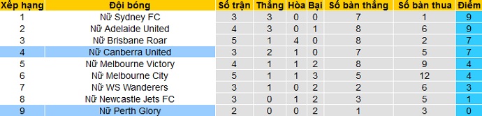 Sau 3 vòng đấu đầu tiên của mùa giải mới giải vô địch quốc gia nữ Úc, Canberra United (W) đang có được 7 điểm và đang tạm đứng thứ 4 trên bảng xếp hạng, kém đội đầu bảng Sydney (W) 2 điểm. Đây cũng là thành tích có phần tiến bộ của đội bóng khi so với vị trí thứ 6 của mùa giải trước.