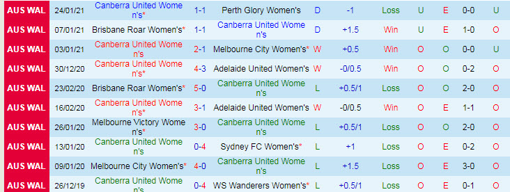 Chiều nay, Canberra (W) có trận đấu dễ dàng và nhiều khả năng chuỗi trận bất bại của thầy trò HLV V. Linton sẽ được nâng lên thành con số 5 trận liên tiếp. Dễ hiểu với nhận định trên khi đối thủ của họ chỉ là đội bóng đứng áp chót Sydney Wanderers (W).