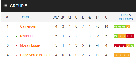 Cameroon chính là chủ nhà của VCK CAN 2021 nên mặc nhiên có vé vào VCK. Nhưng kể cả không là chủ nhà thì những chú “sư tử bất khuất” vẫn thừa khả năng xuất hiện ở VCK. Họ vẫn tham gia vòng loại ở bảng F và dễ dàng có được vị trí dẫn đầu sau 3 chiến thắng và 1 trận hòa.