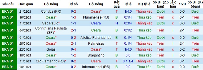 Thế nhưng thành tích gần đây của Ceará lại khá tệ khi chỉ thắng 1, hòa 1 và để thua 3 ở 5 vòng đấu vừa qua. Trên sân nhà thành tích của Ceará còn tệ hơn khi chỉ có được duy nhất 1 trận thắng, để thua tới 4 trong 5 trận gần nhất tại đây.