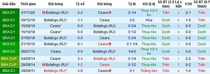 Điều đáng nói là trong cả 5 lần đối đầu trước đó hai đội đang bất phân thắng bại. Thế nên cho dù không còn mục tiêu gì để phấn đấu, Botatogo cũng không muốn thua ở trận đấu này. Trong khi đó với Ceará, có lẽ 1 điểm cũng là đủ để họ có vé tham dự Copa Sudamericana nên chọn cửa dưới ở trận đấu này là hợp lý.