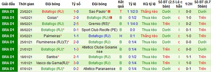 Đã không còn động lực để thi đấu nhưng trong 5 vòng đấu gần đây Botafogo cũng có được 1 trận thắng, 1 trận hòa và để thua 3 trận. Thế nhưng thành tích sân khách của đội bóng thì rất tệ khi chỉ có được 1 điểm duy nhất trong 5 lần du đấu gần nhất.