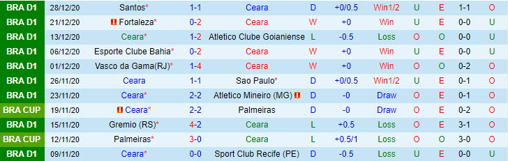 Ceara bước vào giai đoạn nước rút của giải VĐQG Brazil 2020 với phong độ ổn định khi thắng 3, hoà 3 và chỉ thua 1 lần trong số 7 lượt trận vừa rồi. Với phong độ kể trên, họ tạm thời leo lên vị trí thứ 10 trên BXH – vị trí sẽ có vé tham dự Copa Sudamericana mùa tới.