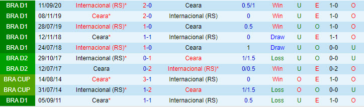 Trong một tháng trở lại đây, Internacional được xem là “con gà đẻ trứng vàng” với các nhà đầu tư. Cụ thể, họ đã thắng kèo cả 4 trận đã đá gần nhất. Rộng hơn, Internacional chỉ thua kèo 2 trong số 9 trận mới đây. Trước Ceara, Internacional cũng tạo được cảm giác an toàn khi thua kèo có 2 lần trong số 7 trận đối đầu vừa qua. Chọn Internacional.
