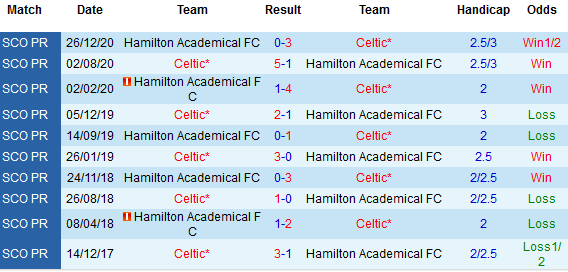 + Soi tỷ lệ kèo châu Á: Celtic đang là địa chỉ đáng tin cậy trên sàn giao dịch châu Á trong các trận đối đầu với 5 trong 7 trận đều vượt qua tỷ lệ. Trong khi đó, Hamilton vừa phụ bạc lòng tin của giới đầu tư châu Á tới 6 trong 8 trận sân khách gần nhất.