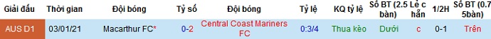 Tỷ lệ kèo Central Coast Mariners vs Macarthur